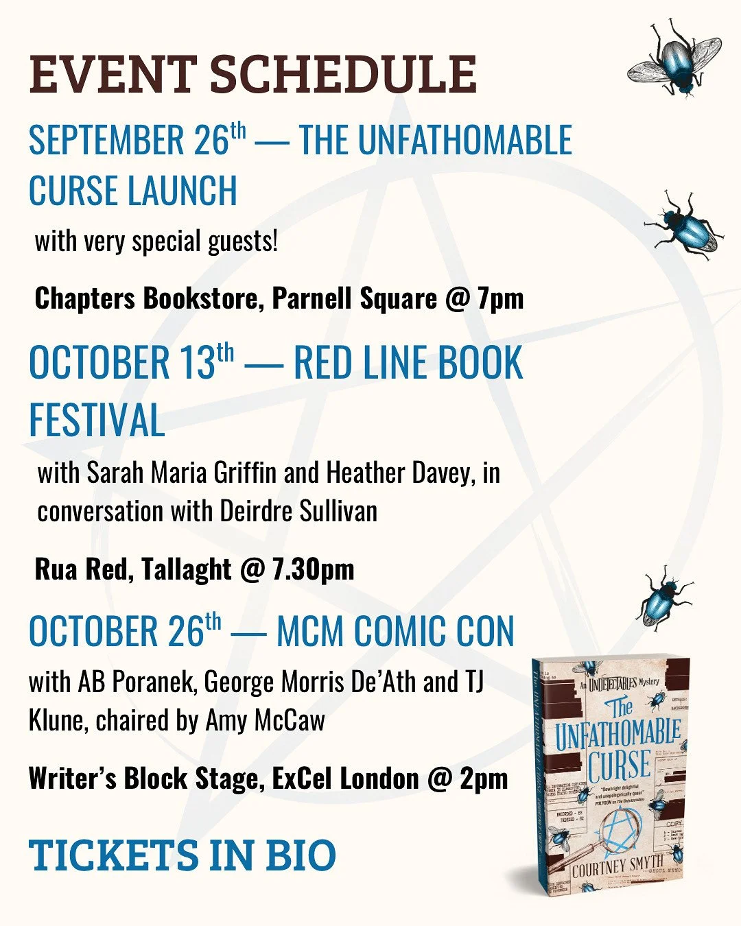 on September 26th at 7pm join me and special guests for a CURSES & CHAOS panel in celebration of the launch of The Unfathomable Curse at Chapters Bookstore Dublin!